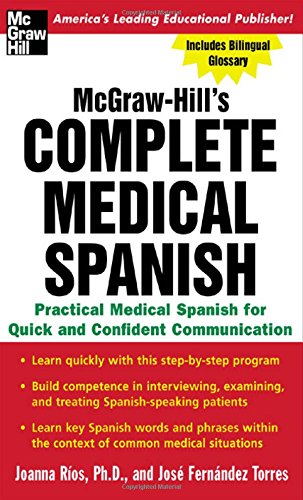 McGraw-Hill's Complete Medical Spanish will teach you the skills needed to formulate original Spanish sentences and confidently dialogue with Spanish-speaking patients and their families. Available alone or as part of a three-CD audio package, McGraw-Hill’s Complete Medical Spanish is an indispensable “tool of the trade” for healthcare providers who work in a variety of multicultural settings.